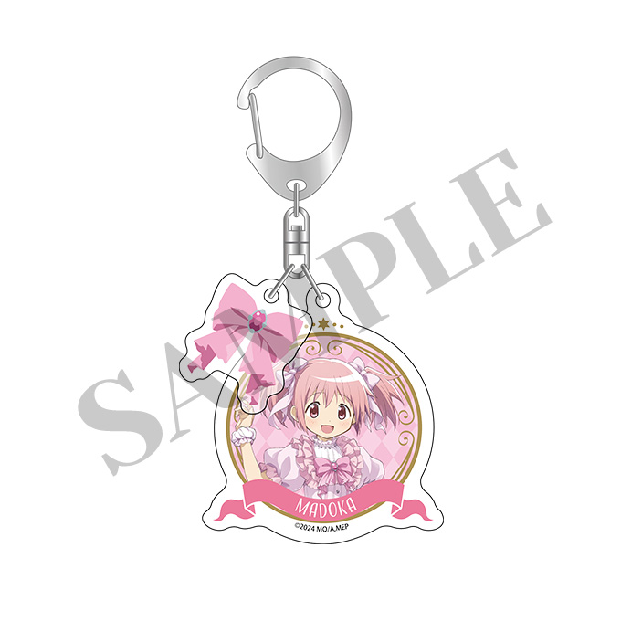リボンパーツ付アクリルチャーム 鹿目まどか¥900(税込)購入制限 3個までイベント描き下ろしイラストを使用したアクリルチャームです。オリジナル衣装から描き起こしたリボンパーツがポイント♪