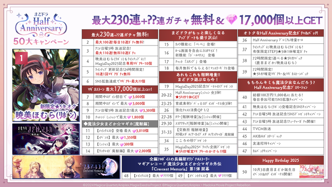 「魔法少女まどか☆マギカ Magia Exedra」は9月28日(日)20時より、『まどドラハーフアニバーサリー記念 50大キャンペーン』を開催いたします。