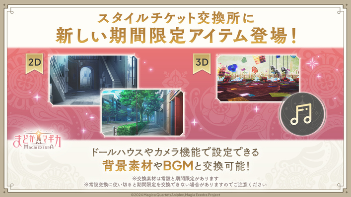 「スタイルチケット交換所」では、期間限定でパティシエールイベントに関連する2D背景を交換いただくことができます。
