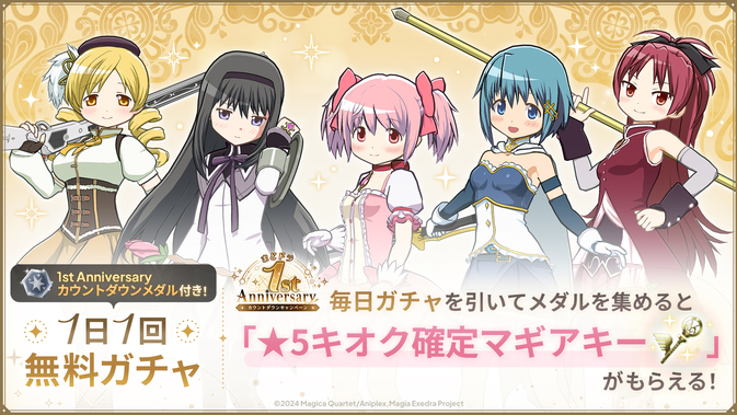 1日1回無料ガチャを引いて「★5キオク確定マギアキー」がもらえる!まどドラ 1st Anniversaryカウントダウンキャンペーン開催!1日1回無料ガチャ開催!